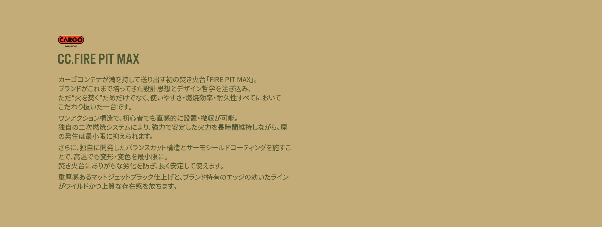 カーゴコンテナが満を持して送り出す初の焚き火台「FIRE PIT MAX」。